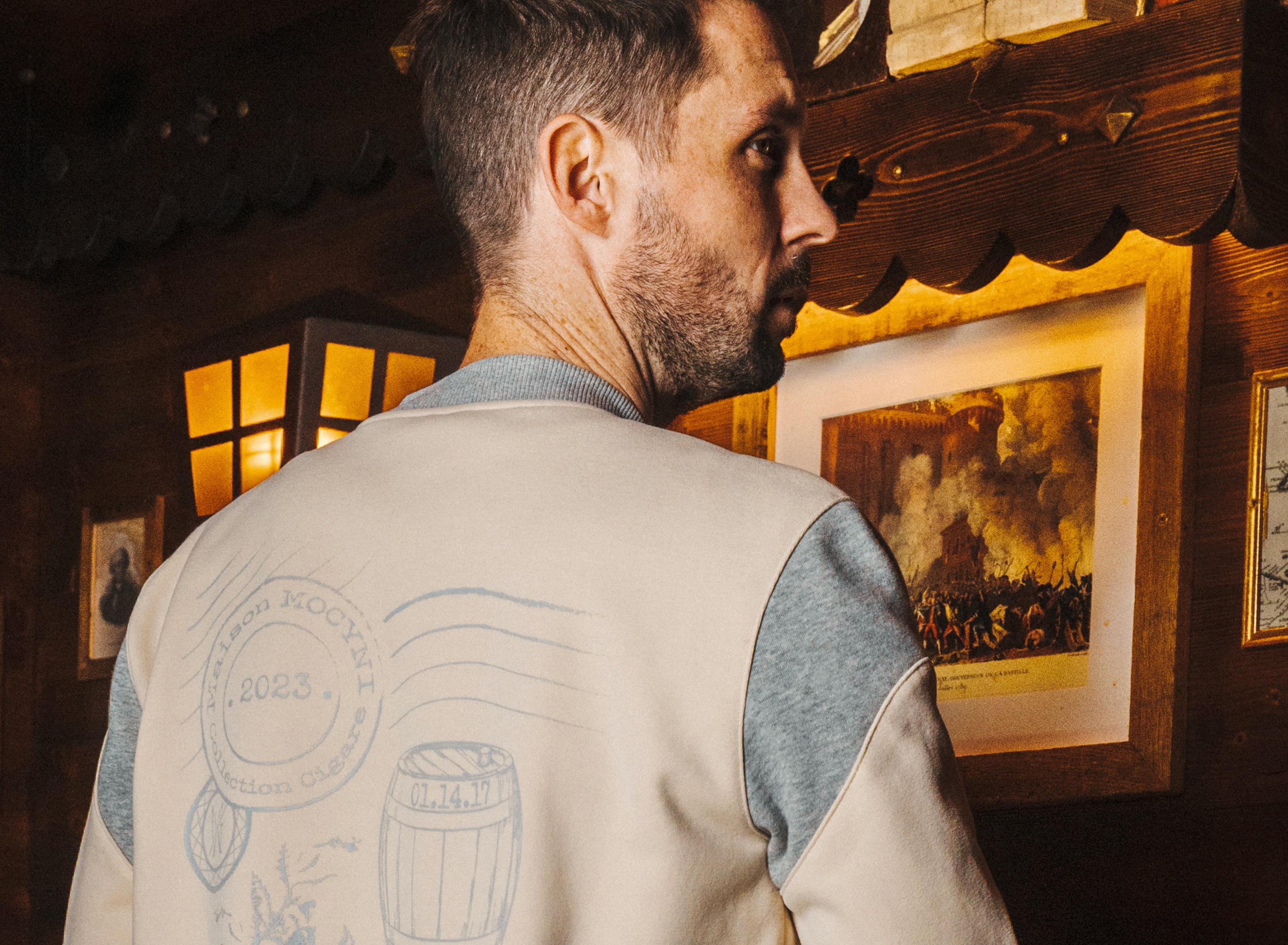 Maison MOCYNI propose une gamme variée de vêtements masculins haut de gamme, incluant des T-shirts, joggings, pantalons, manteaux, bombers, et cardigans, principalement issus de la "Collection Cigare"